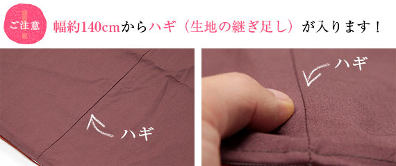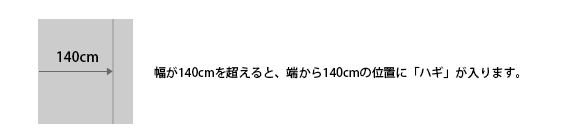 幅が約140cmを超えるものから、ハギ(生地の継ぎ足し)が入ります。多少の凹凸感があるのは否めませんが、引っかかりがある程ではございません。強度については高い縫製で結合しておりますので、通常使用において自然に解れる心配はございませんのでご安心下さい。