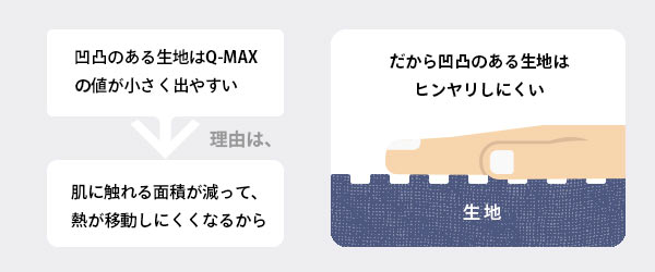 また、Q-MAXは平らな生地に比べ、凹凸のある生地の方が小さい値が出やすくなります