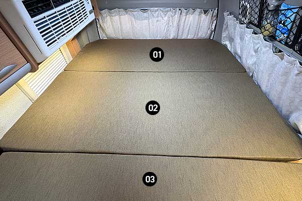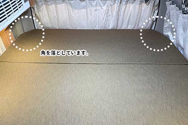 3つのうち1つだけ、車両の凹凸に合わせてマットレス本体の”角”を落としており、カバーもそれに沿うようお作りしています。