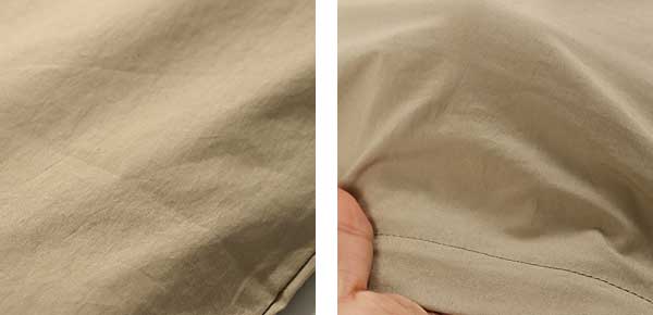 毛羽立ちの原因となる糸表面の余分な繊維が少ないため、毛羽立ちや毛羽落ちが抑えられ、ホコリも出にくくなり清潔感が保たれます。